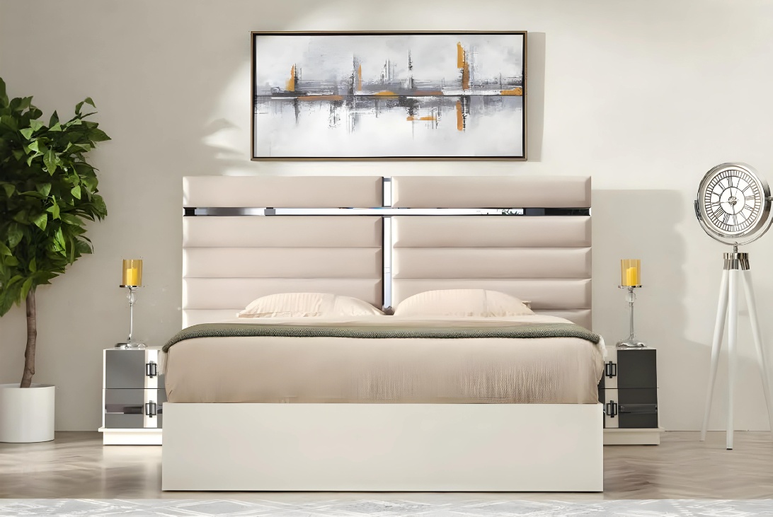 Luksusa bežs koka gulta guļamistabai modernā dizaina stilā | xlmebeles.lv