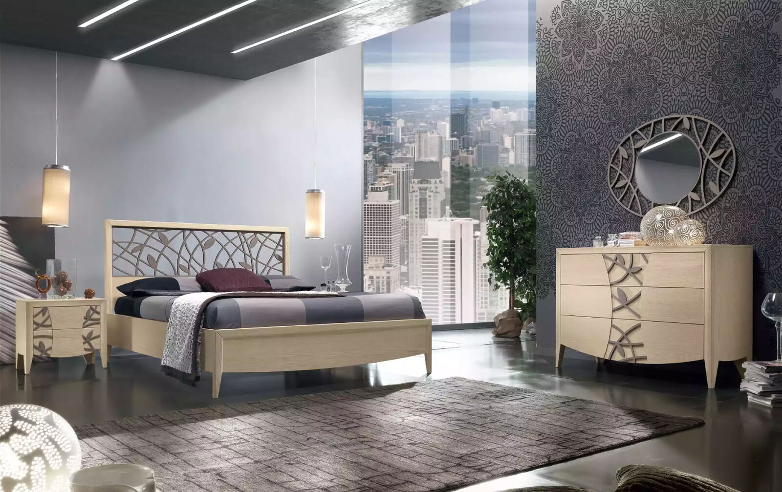 Ievērojami prakstilas un modernas dizaina elementi padara šo guļamistabas komplektu par lielisku izvēli jebkuram mūsdienīgam interjeram. Divi naktsgalda galdiņi (apm.: 55 x 37 x 52 cm) nodrošina praktisku uzglabāšanas vietu un papildina gultas dizainu, radot saskaņotu un stilīgu kopējo telpas izskatu. Beige krāsas skaidrais un viegls tonis padara šo komplektu par universālu risinājumu, kas lieliski iekļausies jebkurā guļamistabā, piešķirot tai mūsdienīgu un silto piesitienu.