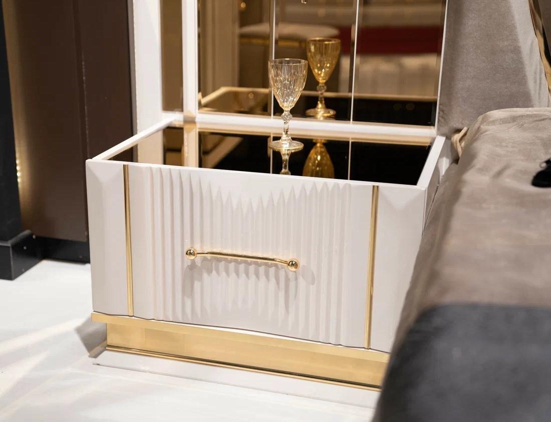 Šis luksusa komplekts ideāli iederēsies mūsdienīgā interjerā, piešķirot telpai eleganci un siltumu. Gulta un naktsgaldi ir kompakta izmēra, tāpēc tos var izvietot gan lielās, gan mazās guļamistabās. Krāsas tonis ir attēlotā koka, kas piestiprina dabisku un modernu izskatu. Šis guļamistabas komplekts būs gan praktisks, gan vizuāli pievilcīgs papildinājums jebkurai guļamistabai, nodrošinot gan ērtības, gan stilu.