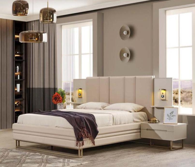 Guļamistabas komplekts, luksusa, pilns, smilšu krāsas, gulta, 2x naktskapi