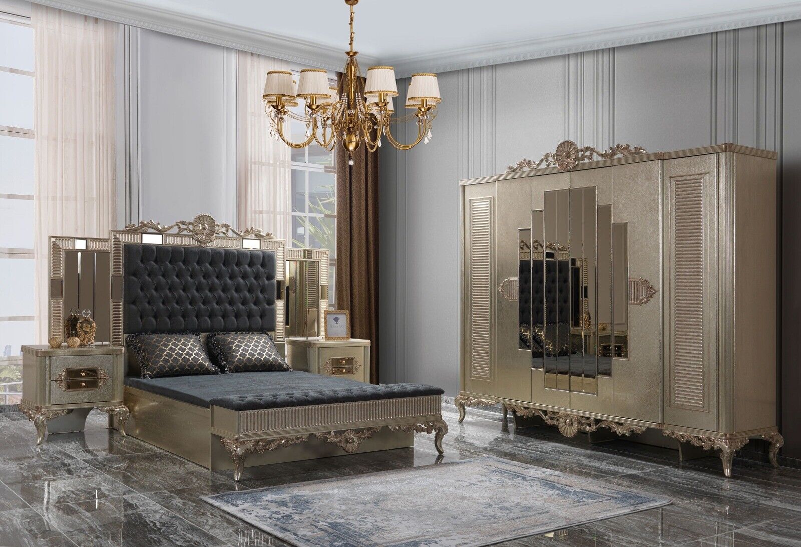 Divu personu gultas Chesterfield Luksusa guļamistabas komplekts Gulta 5 daļas Zelta gultas