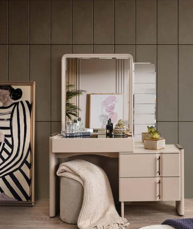 Materiāls: šis galds ir izgatavots no koka un stikla, nodrošinot gan izturību, gan eleganci. Krāsa: elegantā kolorīta, kas viegli iekļausies jebkurā mūsdienu interjerā. Šis produkts ne tikai palīdzēs sakārtot un organizēt kosmētikas produktus, bet arī piešķirs jūsu guļamistabai ekskluzīvu un modernu izskatu. Ideāls komplekts, lai rūpētos par savu izskatu, sniedzot vienlaicīgi stilīgu un praktisku risinājumu savai dienas sākumam.