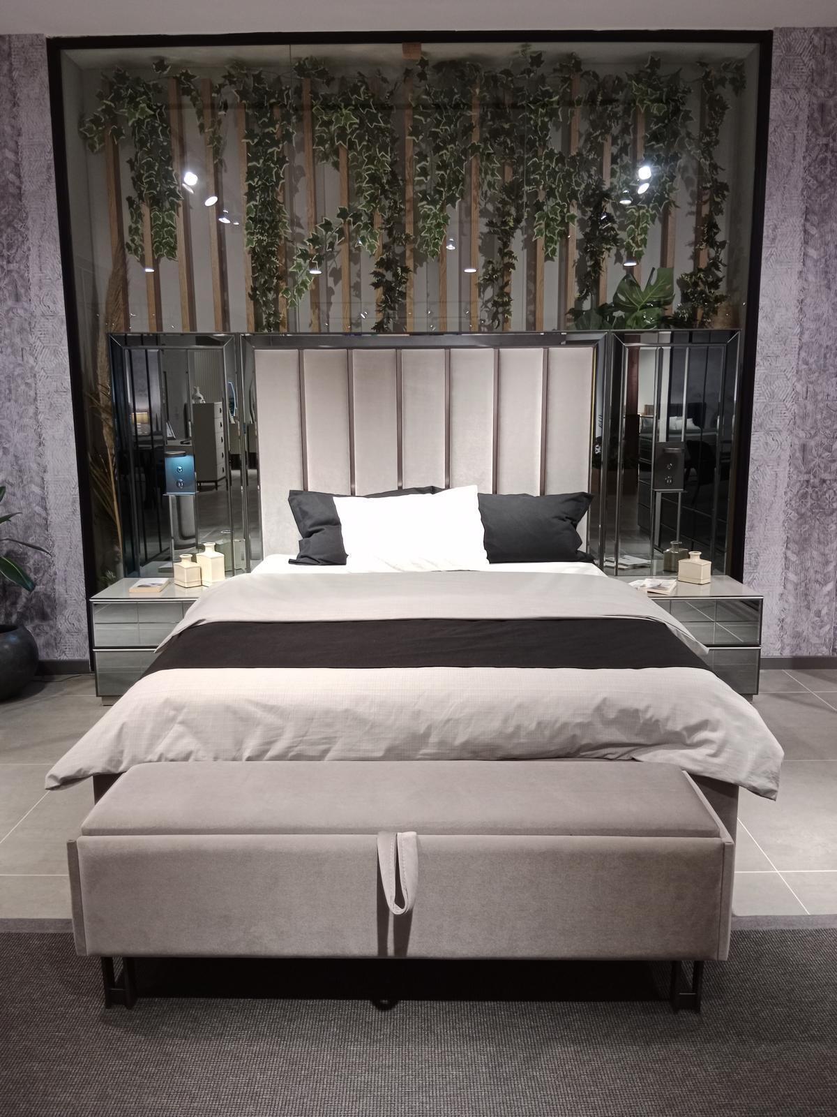 Ekskluzīvs luksusa guļamistabas komplekts: gulta, 2 naktsgalda un sols