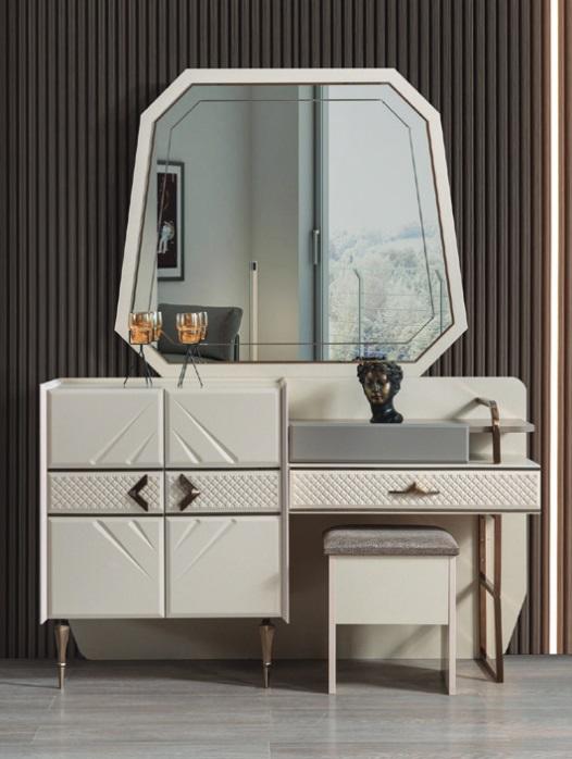 Baltā guļamistabas komplekts, luksusa mēbeles, grima galds