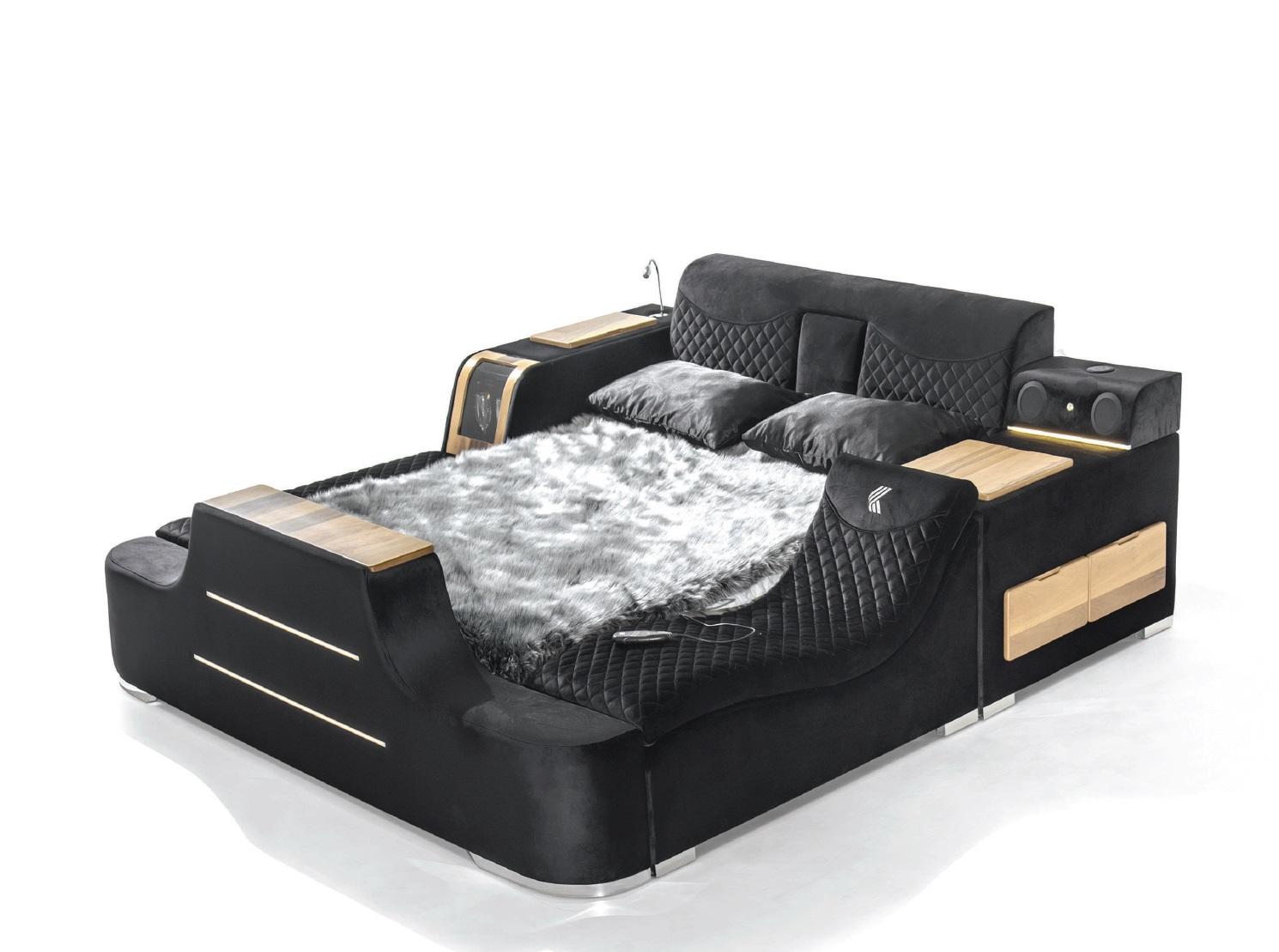 Gulta ar TV pacēlāju televizoru Multifunkcionālie gultas divguļamā gulta guļamistabā ir greznība un funkcionalitāte vienā - šis mēbeļu gabals apvieno vairākas inovatīvas īpašības, lai radītu pilnīgu relaksācijas pieredzi guļamistabā. Ar USB pieslēgumu, skaņas sistēmu ar Bluetooth, TV pacēlāju un masāžas funkciju, šis multifunkcionālais gultas divguļamais nav tikai parastā gulta, bet gan pilnībā aprīkots relaksācijas centrs. Izmantojot kvalitatīvu koka un tekstilu, šis gultas divguļamais ir izturīgs un moderns dizaina elements, kas papildinās jebkuru guļamistabu.