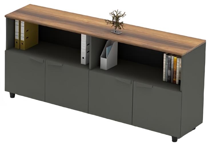 Biroja komplekts: konsoles galds, zems galds, koka konteiners pelēkā brūnā krāsā | xlmebeles.lv