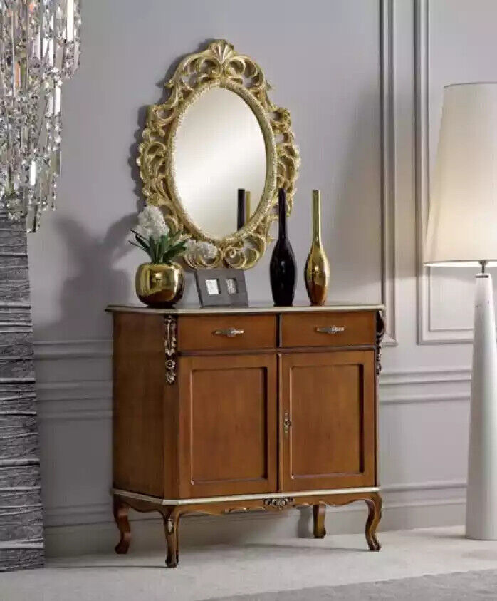 Šis Itāļu stila mēbeļu koka komoda skapis ir elegants un funkcionāls elements jūsu interjerā. Ar dimensionāla dizaina iezīmēm un stilīgu apdari, tas piešķirs jūsu telpai mūsdienīgu un stilīgu izskatu. Sānu galds apmēram 103 x 50 x 100 cm nodrošina pietiekami daudz vietas gan uzglabāšanai, gan izklaidei. Šis skapis ir ideāli piemērots ne tikai uzglabāšanai, bet arī dekoratīvai funkcijai jūsu mājās. Koka materiāls garantē izturību un ilgmūžību, nodrošinot ilgstošu prieku no sava ieguldījuma.