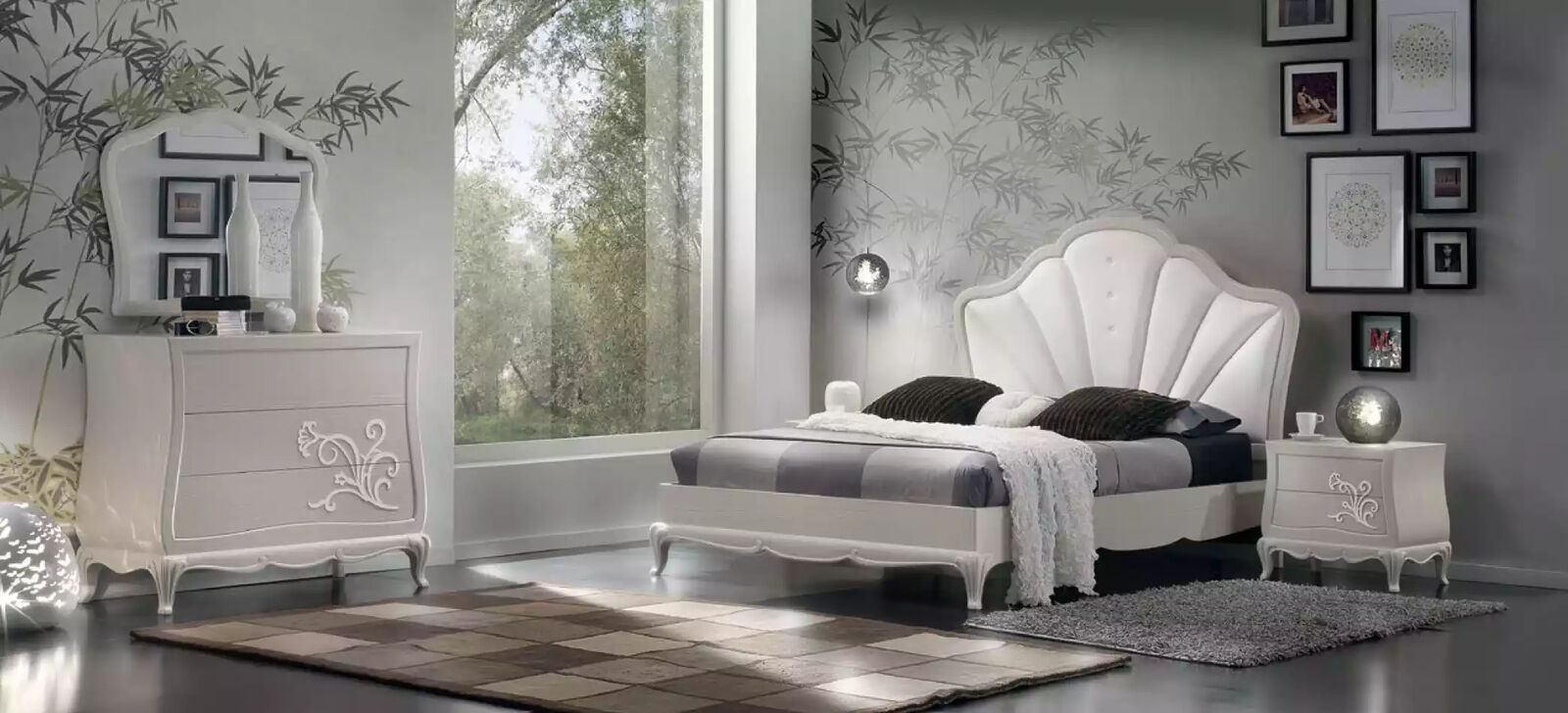 Šis dizainera mēbeļu komplekts ir lielisks papildinājums jebkurai guļamistabai, piedāvājot gan funkcionalitāti, gan estētisko baudījumu. Gulta ar lieliskiem izmēriem un komfortablu guļamo platību nodrošina atpūtu pēc garas dienas. Naktsgaldiņi un kumode piedāvā praktiskus un plašus uzglabāšanas risinājumus, savukārt spogulis piešķir telpai jaukumu un stilu. Šis komplekts ir piemērots gan modernam, gan klasiskam interjeram, radot elegantu un mājīgu atmosfēru guļamistabā. Izvēlieties Luksusa guļamistabas komplektu 5 gab. un iegūstiet dizainera mēbeles, kas iederēsies jūsu gaumē un piedāvās ērtību un funkcionalitāti.