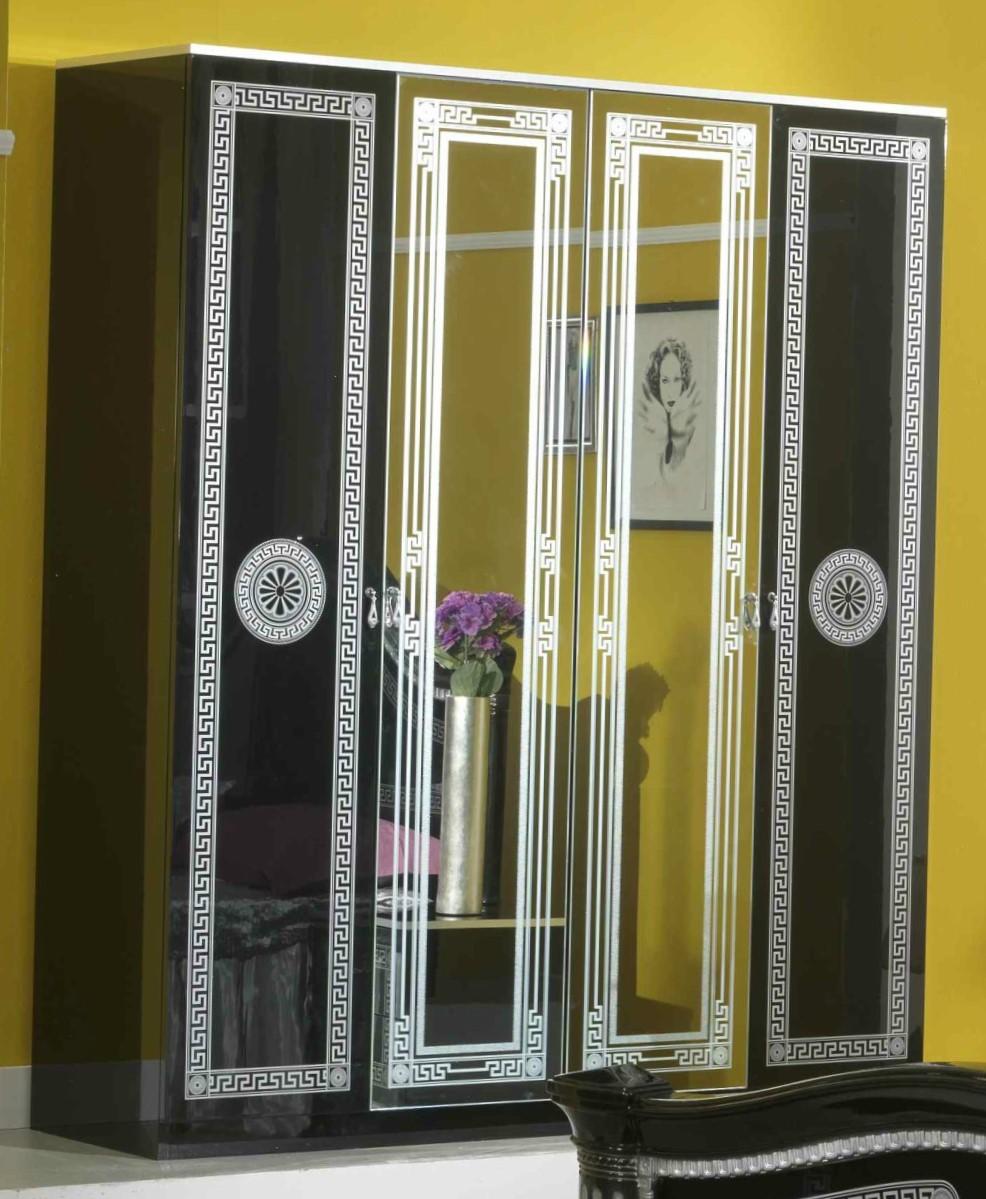 Guļamistabas komplekts Karaliskajā stilā Moderns gultas galda komplekts 6 gab. Jaunums ir grezna un izsmalcināta guļamistabas komplekta izvēle tiem, kas novērtē augstas kvalitātes un eleganci savā interjerā. Šis komplekts iekļauj modernas dizaina elementus, kuri saderēs ar jebkuru mājas dekori. Gultas izmēri - 180x200 cm, un kopējie gabarīti ir aptuveni 203 x 205 x 119 cm, nodrošinot ērtu guļamo vietu un telpu optimālu izmantošanu. Komplektu papildina 2x Naktsgaldiņi, skapis, komoda un spogulis, kas piešķir telpai vēlamo atpūtas zonu ar stilīgu un modernu piesitienu.