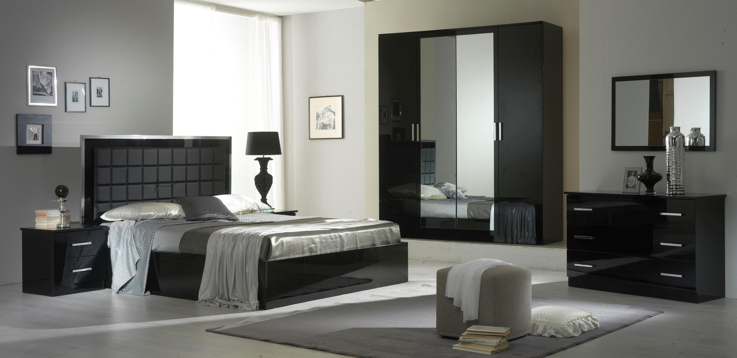 Guļamistabas mēbeles 3 daļu komplektā, viesnīcas gulta + 2 naktslodzes augstā spīduma gultas Itālijā.
