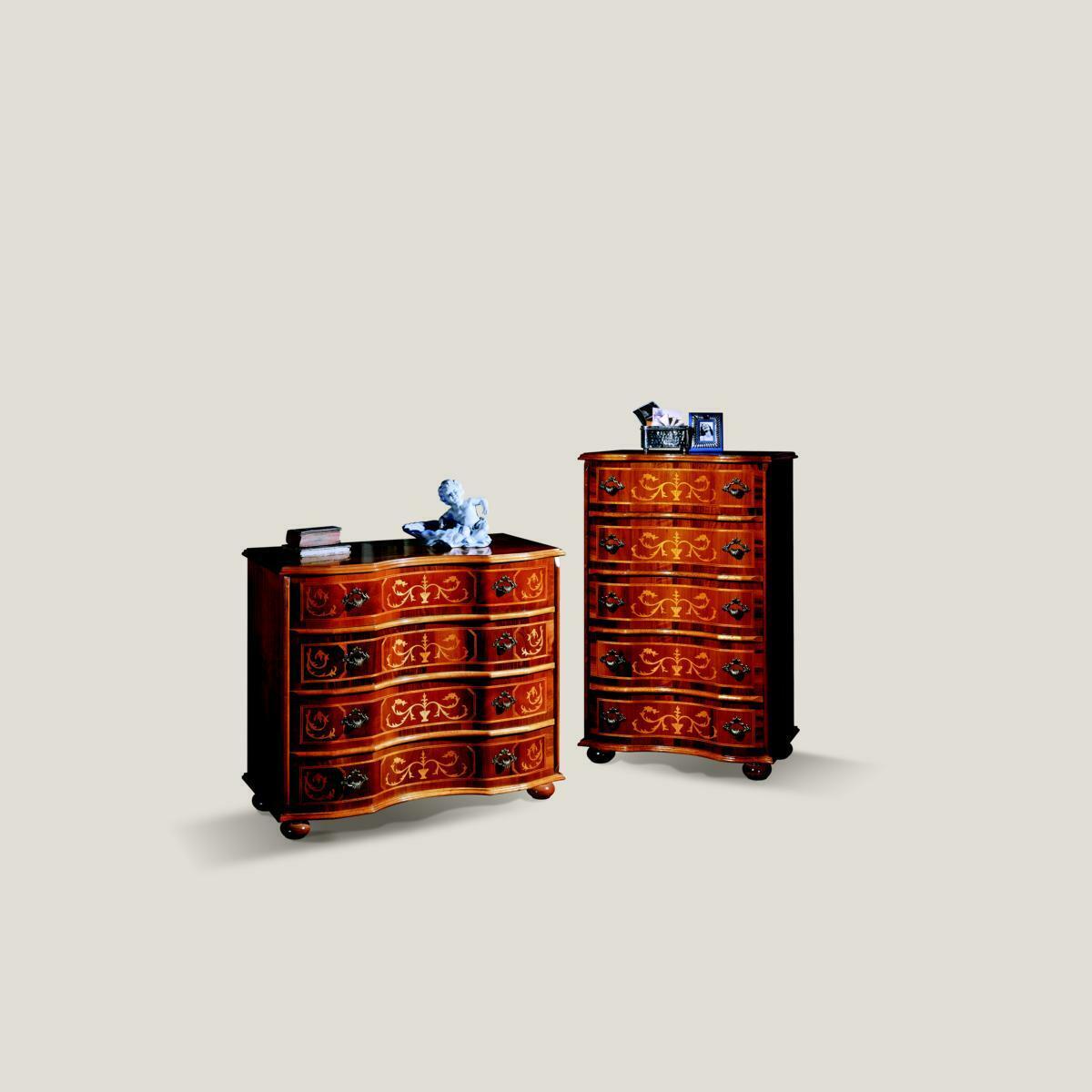 Šis Luksusa komoda skapis ir lielisks izvēle, lai pilnveidotu jūsu mājas iekārtojumu un nodrošinātu kvalitatīvu glabāšanas risinājumu. Ar savu plašo iekšējo telpu un četriem vadustumiem, tas ir ideāls gan dzīvojamā istaba, gan guļamistaba, labiekārtošanai un organizēšanai. Šis kvalitatīvais un elegants komoda skapis ar autentisku koka dizainu būs ne tikai praktisks elements jūsu interjerā, bet arī vizuāli pievilcīgs un greznību plūstošs elements jebkurā telpā.