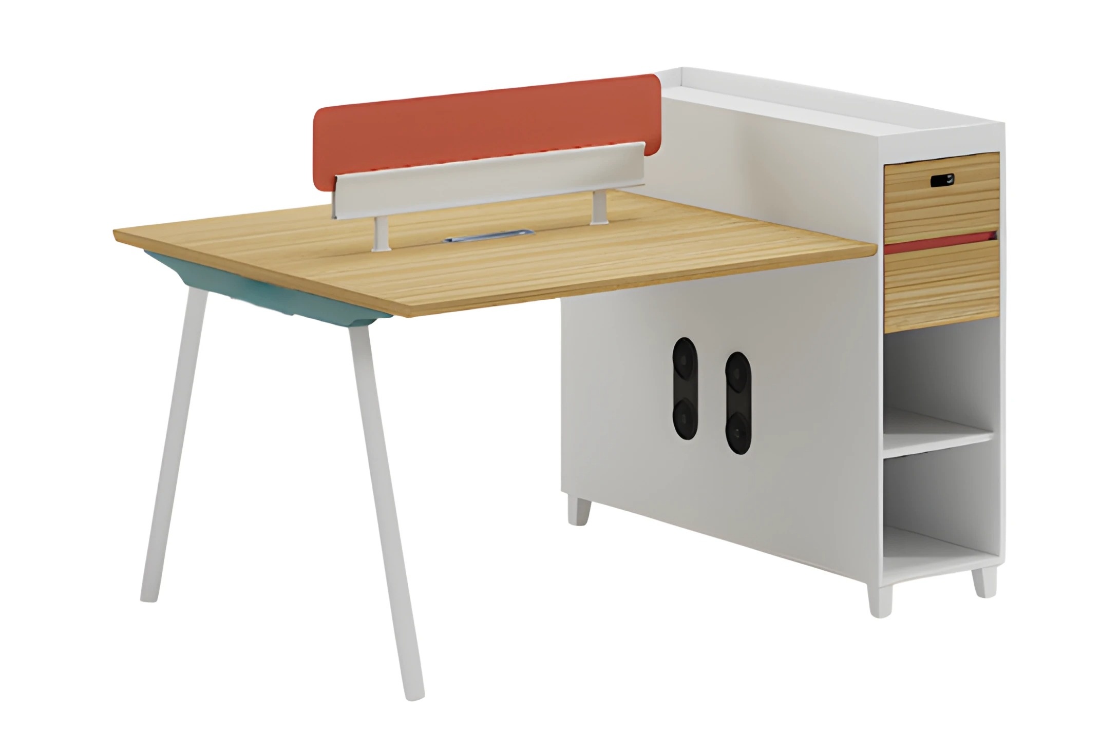 Mūsdienu biroja galds ar atzveltni, uzglabāšanas vietu un plauktiem ir izsmalcināts risinājums, kas apvieno funkcionalitāti un eleganci. Tā baltais tonis un izcila kvalitāte rada pievilcīgu atmosfēru, kas iedvesmo radošumu un produktivitāti. Galds ir veidots no izturīgiem materiāliem, nodrošinot ilgmūžību un stilīgu izskatu. Plašā uzglabāšanas vieta un ērtais plaukts ļauj organizēt darba vidi, saglabājot to kārtīgu un elegantu. Šis galds ir ne tikai mēbele, bet arī statuss, kas atspoguļo izsmalcinātu dzīvesveidu un prasību pēc kvalitātes. Izvēloties šo unikālo gabalu, jūs iegūstat ne tikai funkcionalitāti, bet arī mākslas darbu, kas piešķir jūsu birojam izsmalcinātību.
