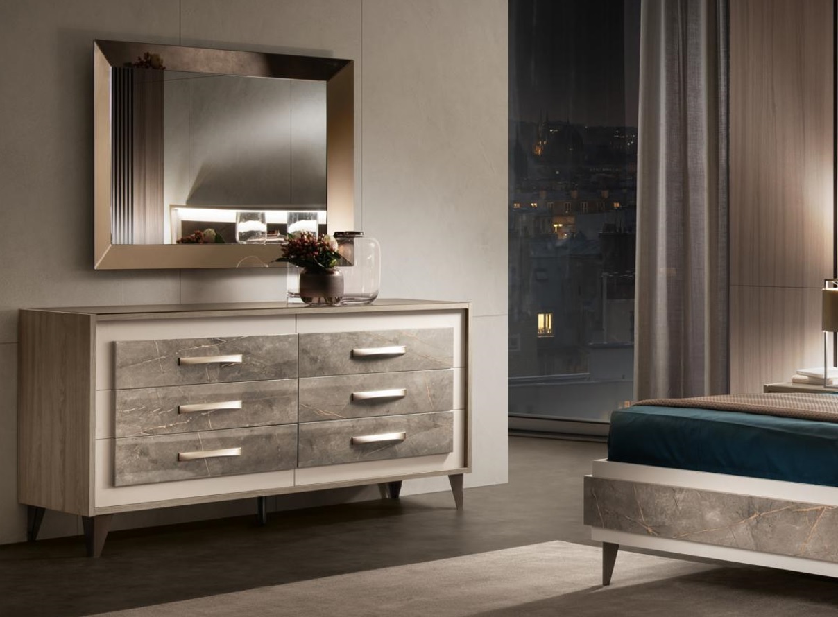 Guļamistabas komplekts ar divguļamā gulta 2 nakts plaukts komoda spogulis arredoclassic 5 gab. komplekts