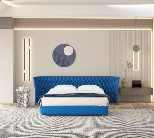 Zils auduma gulta ar polsterētu galvgalvi | xlmebeles.lv
