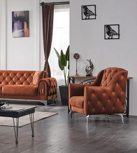 Brūns luksusa krēsls polsterēta mēbele viesistabai Česterfīlda krēsls | xlmebeles.lv