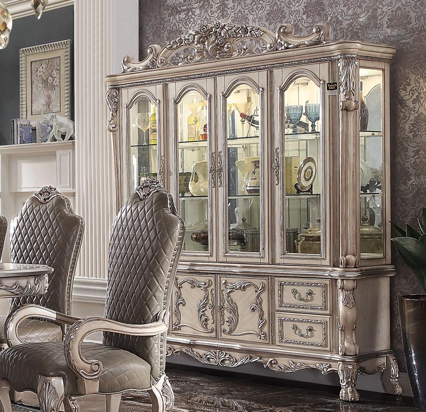 Priekšmets Sudraba Baroka Stila koka Klasiski Itāļu mēbeļu dizains Komoda Jauna ir eleganta un stilīga mēbele, kas iekļaus gaismu un eleganci jebkurā telpā. Šis bufete greznojums ir izgatavots no koka materiāla un to raksturo precīzi izgrieztas detaļas un augstas kvalitātes apdare. Ar tās izmēriem apmēram 168.3 x 50.8 x 96.5 cm, šī komoda ir ne tikai vizuāli pievilcīga, bet arī funkcionāla un noderīga mājas interjera papildinājums. Kā attēlā redzams, tas ir sudraba baroka stila dizains, kas sniedz telpai māksliniecisku pieskārienu un ekskluzīvu izskatu.