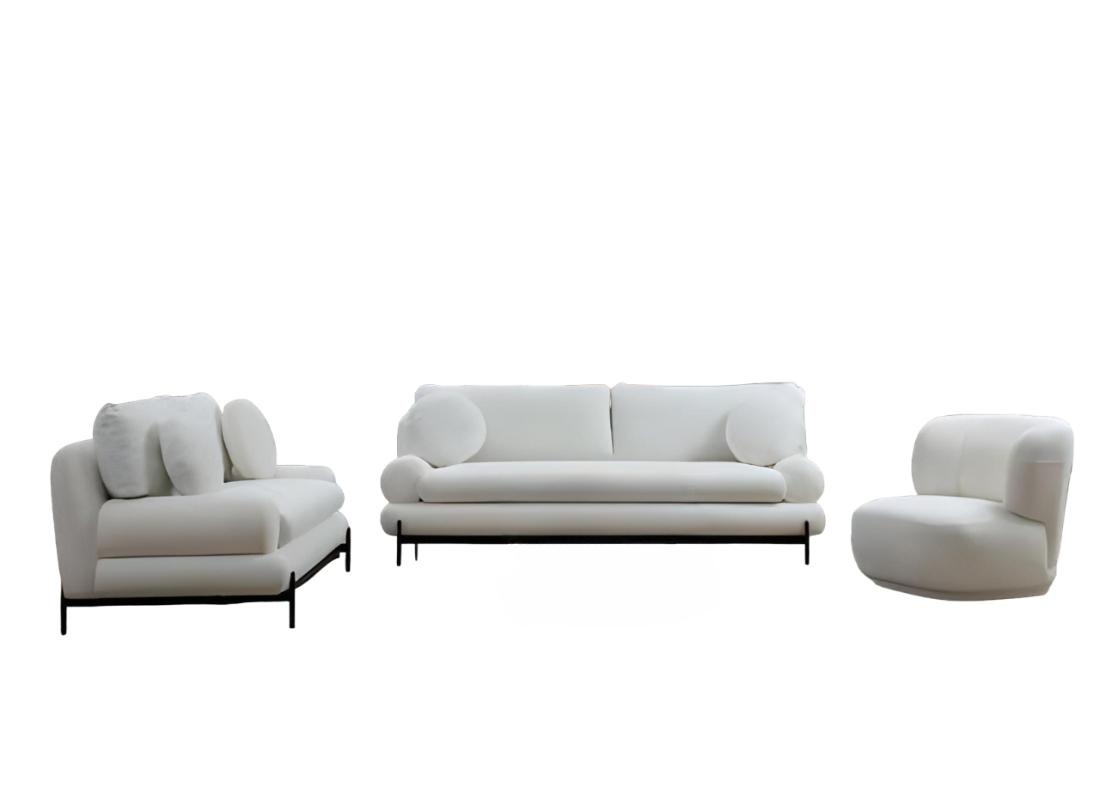 Ekskluzīvs moderns balts dīvānu komplekts ar 3-vietīgu, 2-vietīgu krēslu, 3 gabali | xlmebeles.lv