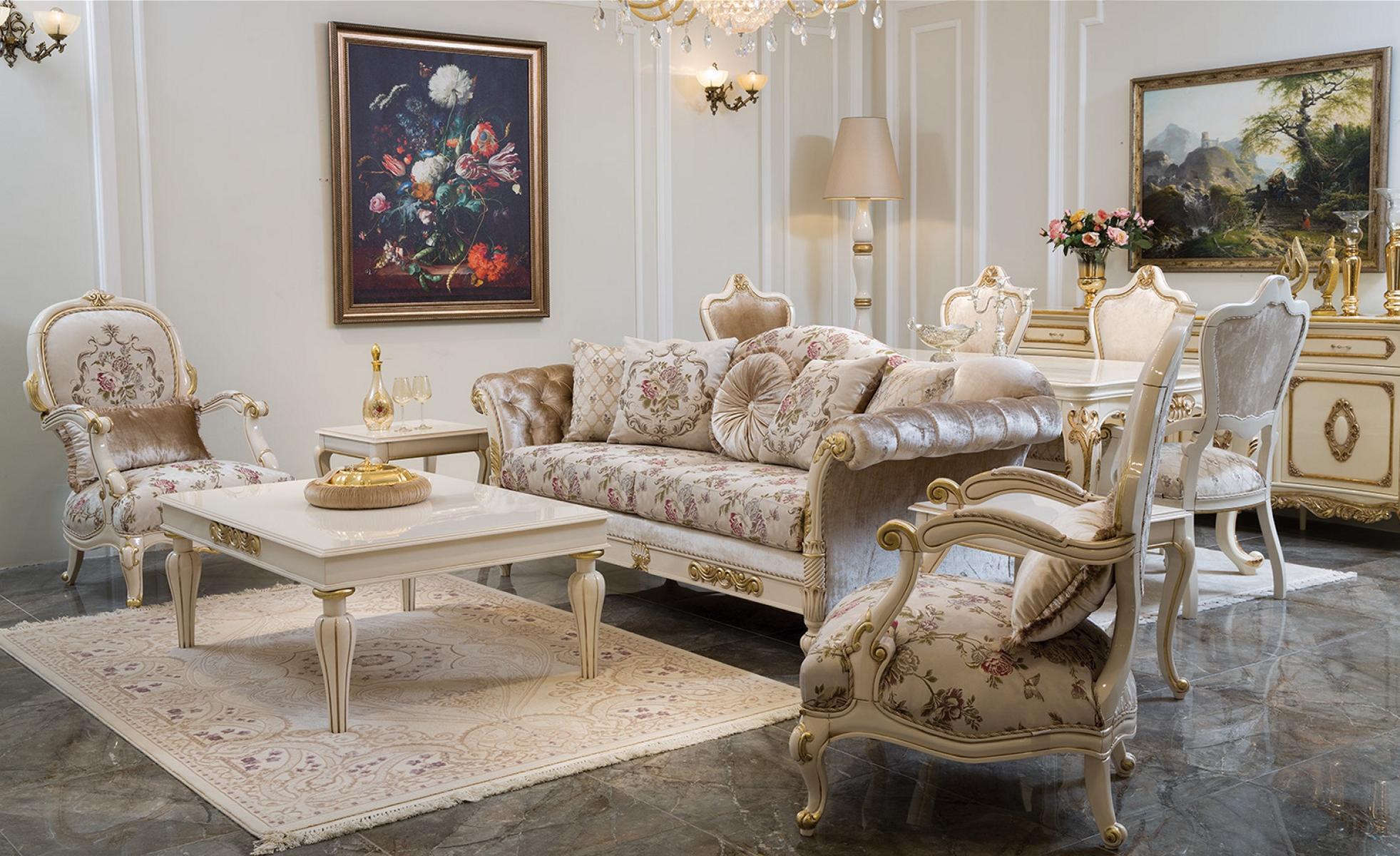 Luksusa dīvānu garnitūra ir elegants un funkcionāls risinājums jūsu viesistabai, piedāvājot augstvērtīgu komfortu un stilīgu dizainu. Šī 4-daļīgā komplekta centrālā daļa ir 3 vietīgs dīvāns, kas nodrošina komfortablu sēdvietu ģimenes locekļiem vai viesiem. Dīvāna izmēri ir aptuveni 228 x 88 x 108 cm, ar sēdekļa augstumu 42 cm un dziļumu 58 cm. Komplektā ietilpst arī divi krēsli, kas katrs izmērs ir 80 x 72 x 112 cm, nodrošinot papildus sēdvietas un harmonisku izskatu ar dīvānu. Kafijas galdiņš ar izmēriem 121 x 81 x 44 cm ir ideāli piemērots, lai turētu grāmatas, dzērienus vai dekoratīvos priekšmetus. Visi izstrādājumi ir izgatavoti no kvalitatīva koka un rada greznu un mājīgu atmosfēru jebkurās mājās.
