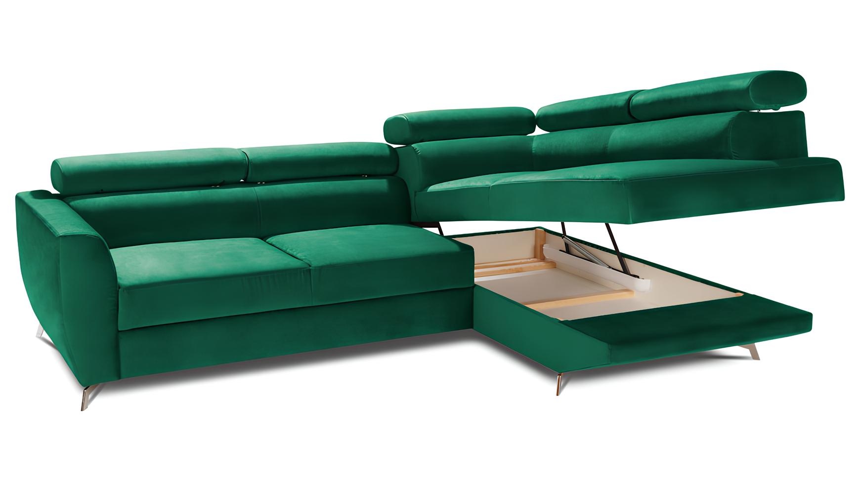 Stūra dīvāns ar uzglabāšanas vietu un gultas funkciju ir izsmalcināts risinājums, kas apvieno eleganci un funkcionalitāti. Tā zaļais audums piešķir telpai dzīvīgumu un harmoniju, savukārt izsmalcinātais dizains izceļ jūsu interjera estetiku. Dīvāns ir ne tikai estētiski pievilcīgs, bet arī praktisks, nodrošinot plašu uzglabāšanas iespēju un vieglu pārvēršanu par gultu, radot komfortu un viesmīlību. Šis dīvāns ir ideāls izvēle, lai veidotu ekskluzīvu atmosfēru jūsu mājās. Izvēloties šo unikālo gabalu, jūs iegūstat ne tikai mēbeli, bet arī greznības simbolu, kas atspoguļo jūsu izsmalcināto dzīvesstilu.