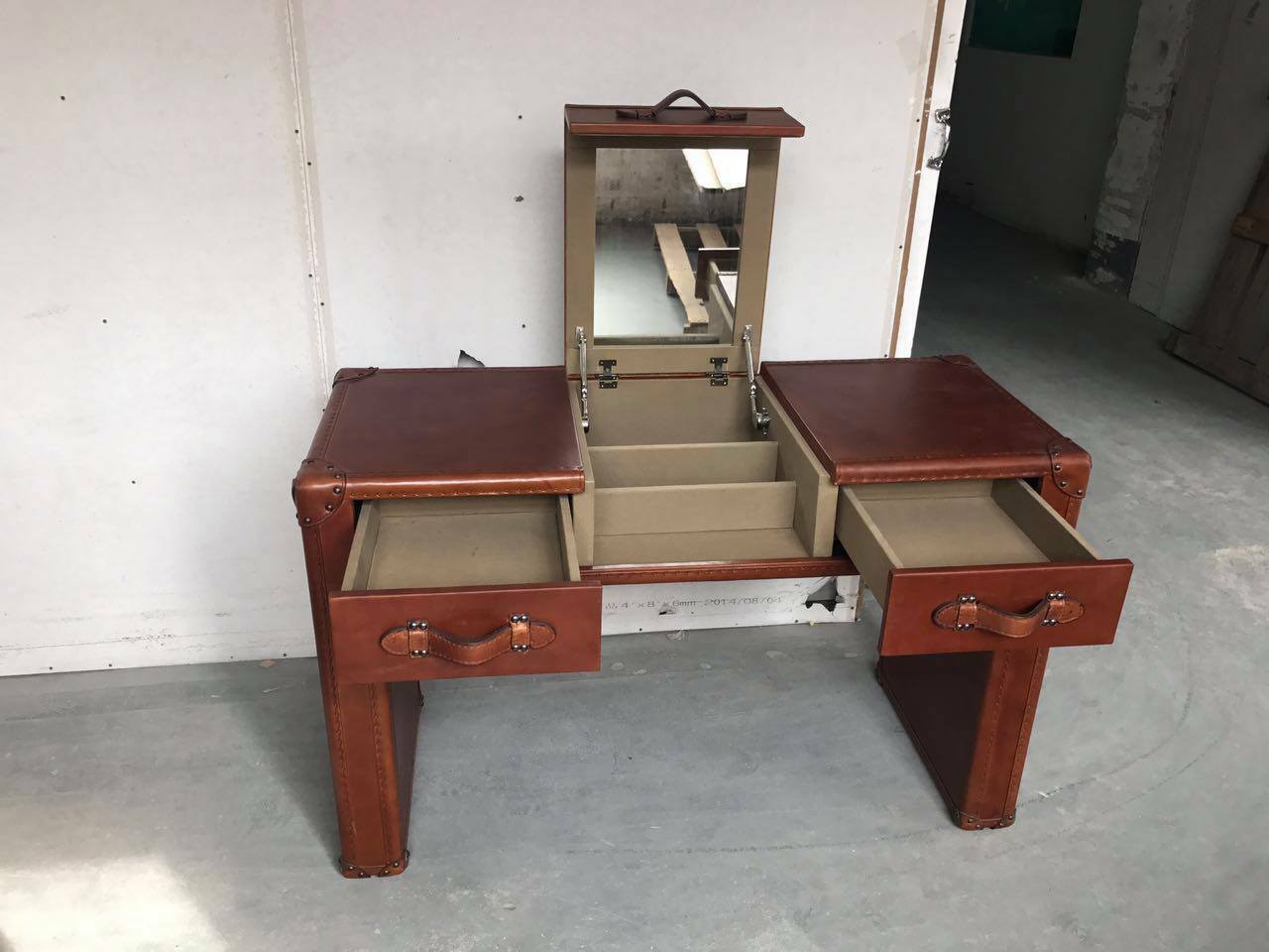 Grims galds, frizieris, kosmētikas galds, komoda, paklājs, vintāžas ādas koferis jauns