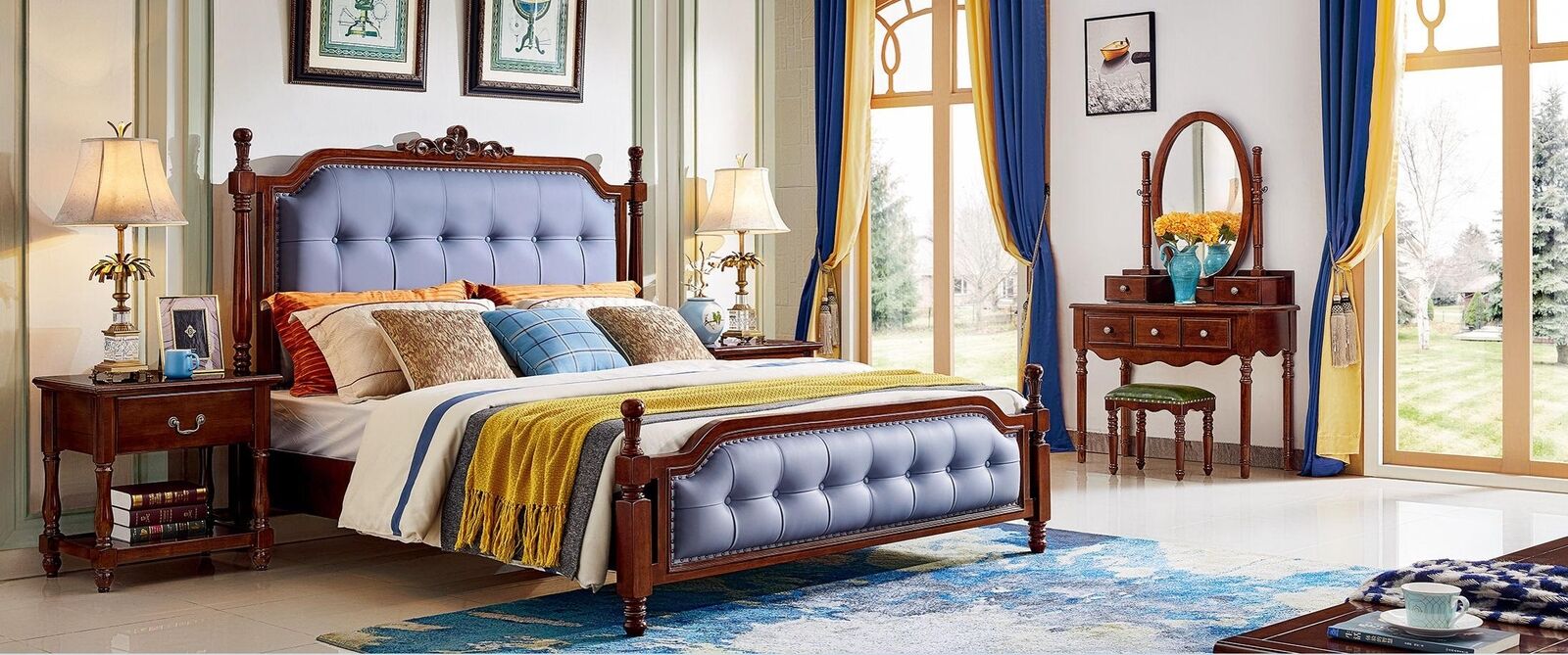 Guļamistabas komplekts, guļamistabas mēbeles, gulta, kosmētikas galds, koka mēbeles, miega komplekts