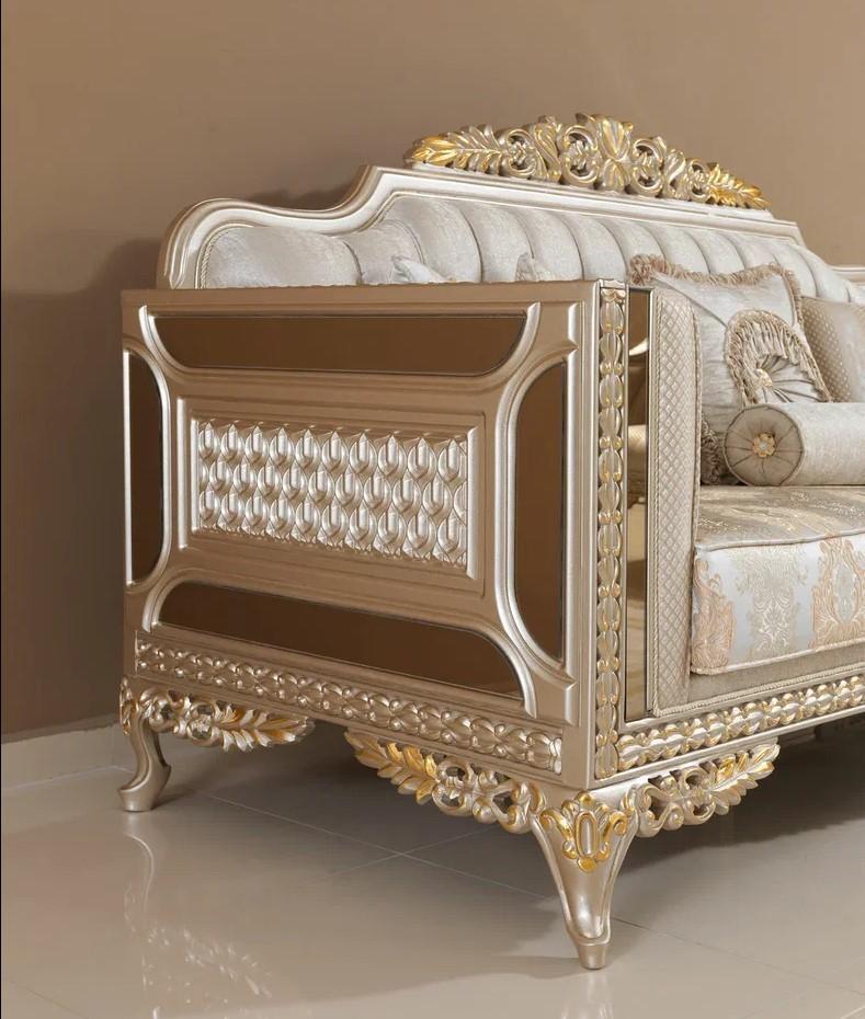 Šī modernā un jaunā luksusa mēbeļu komplekta 'Sofas komplekts 3311' piedāvātās sēdvietas nodrošina gan stilīgu izskatu, gan ērtu sēdvietu jūsu dzīvojamajai istabai. Ar koka un tekstila kombināciju kā galveno materiālu, šis komplekts ir gan izturīgs, gan viegli kopjams. Sēžot uz šiem mēbelēm, jūs ne tikai baudīsiet ērtību un atpūtu, bet arī iekļausieties mūsdienīgā un eleganti iekārtotā telpā. Krāsa, kas atbilst attēlam, padarīs šo komplektu par ievērojamu skatu jūsu mājas interjerā.