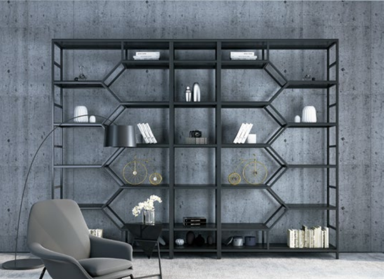 Metāla plaukts ar nodalījumiem, dizainera luksusa plaukts lofta stilā, skapis 3 daļu komplektā.