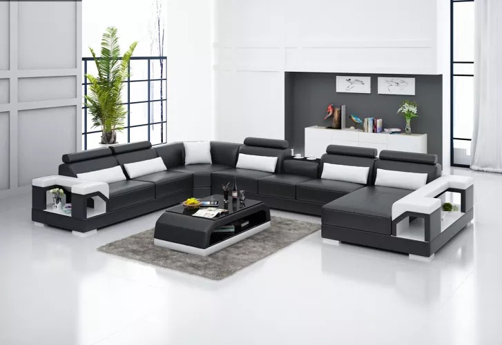 Stūra dīvāns Apdare Stūra dīvāns Sofa Mūsdienu dzīvojamā istaba ir gan stilīgs, gan funkcionalitāti apliecinošs mēbeles gabals, kas pilnībā pārveidos jūsu dzīvojamās istabas interjeru. Šis stūra dīvāns U-veidā ir pieejams divos izmēros - apmērā 278 x 408 x 178 cm vai 178 x 408 x 278 cm, nodrošinot plašas un ērtas sēdvietas jums un jūsu viesiem. Ar premium ādas šķiedru audumu (70% ādas/30% poliestera) un īsto koka iekšējo rāmi, šis dīvāns ir gan izturīgs, gan elegants.