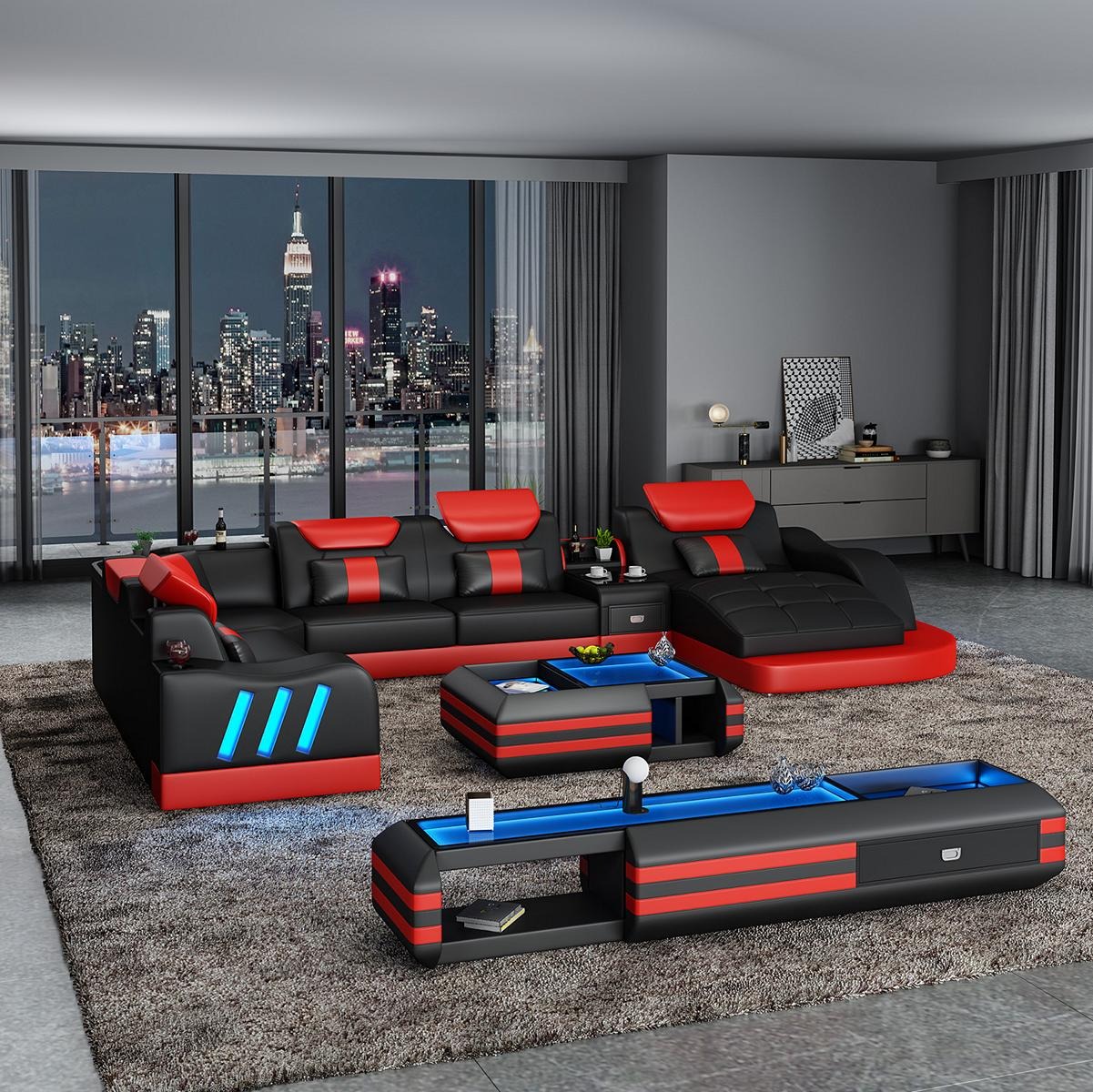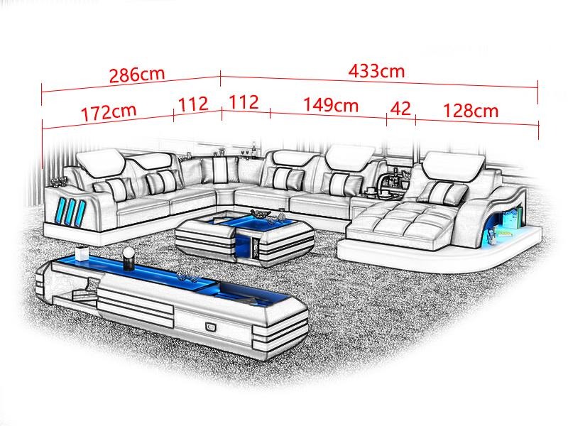 Stūra dīvāns īpašs dzīvojamo platību polsteris stūrgalma dīvāns dīvāns USB LED ir elegantas un modernas dizaina mēbele, kas iederēsies jebkurā dzīvojamā telpā. Šis dīvāns U formas dizains ne tikai padarīs jūsu telpu vizuāli pievilcīgāku, bet arī nodrošinās ērtu atpūtu un relaksāciju. Ar 3 x USB portiem varēsiet ērti uzlādēt savus ierīces, bet augstie atzveltnes un sēdēšanas augstums garantēs maksimālu komfortu. Lielisks materiāls - Premium ādas šķiedru audums ar 70% ādu un 30% poliestera piejaukumu nodrošinās gan izturību, gan mīkstu komfortu.