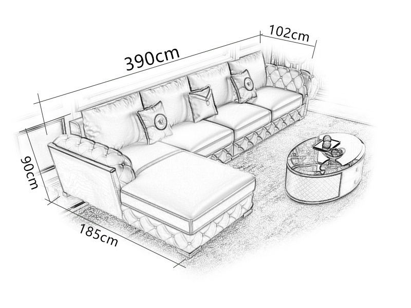 Stūra dīvāns L-formas dizaina moderns dīvāns ir īpašs mēbeļu gabals, kas izceļas ar savu eleganto un moderno dizainu. Ar garumu 390 cm, platumu 185 cm un augstumu 90 cm, šis dīvāns ir lielisks papildinājums jebkuram mājas interjeram. Kvalitatīvais materiāls - Premium ādas šķiedras audums (70% āda / 30% poliesters) nodrošina ne tikai komfortu, bet arī izturību un ilgmūžību.