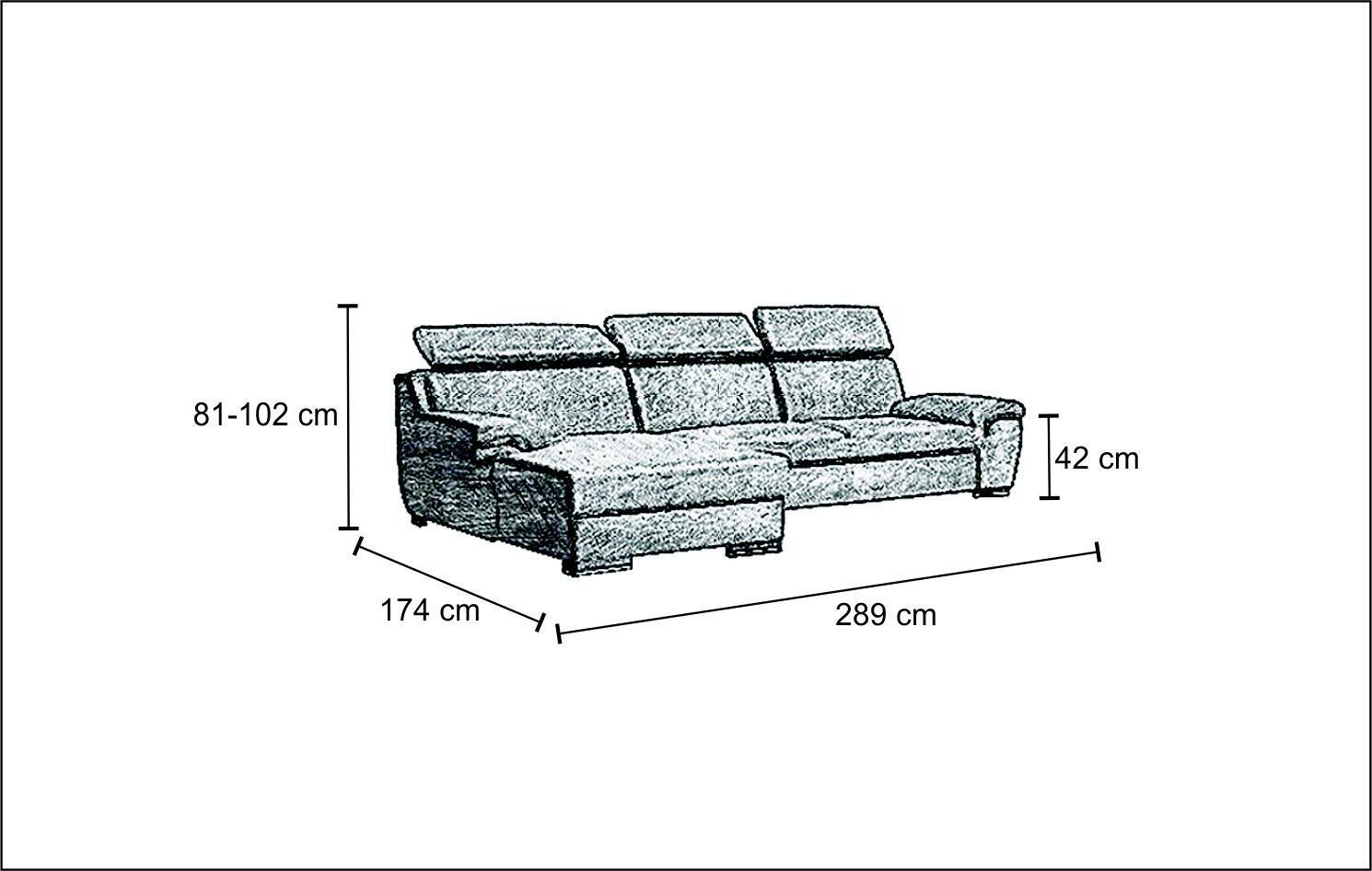 Papildus tam, Stūra dīvāns L-formā ir aprīkots ar ērtiem sēdekļiem, kas nodrošina ērtu atpūtu un relaksāciju. Ar tādām izmēriem kā 289 cm x 174 cm kreisajā pusē un 174 cm x 289 cm labajā pusē, šis dīvāns piedāvā lielisku sēdināšanas vietu gan lielām, gan mazām telpām. Neatkarīgi no tā, vai vēlaties iekārtot savu dzīvojamā istabu vai viesistabu, šis mēbeļu gabals būs gan praktisks, gan stilīgs elements jūsu interjerā.