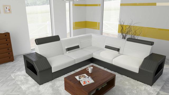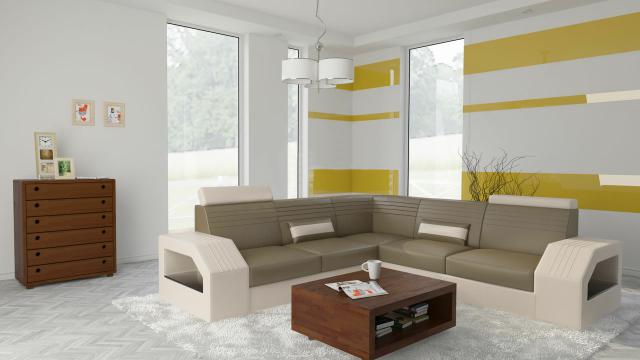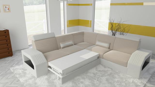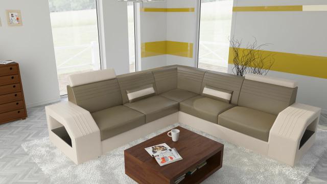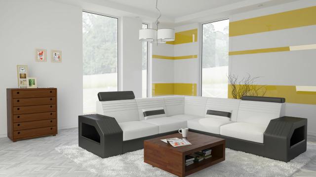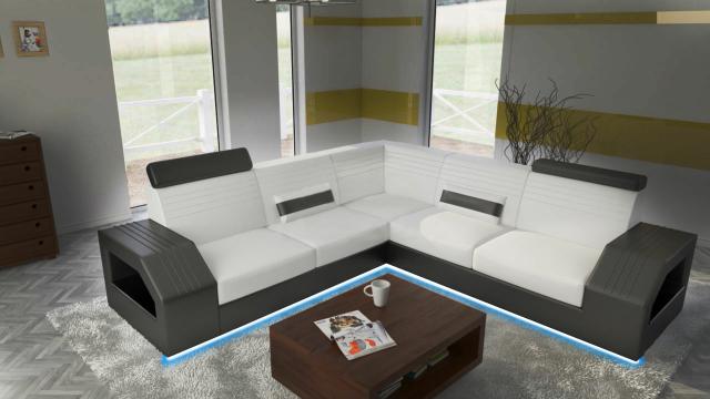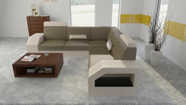 Designer Sofa Couch Ecksofa Leder Stoff Textil Polster Garnitur Wohnlandschaft