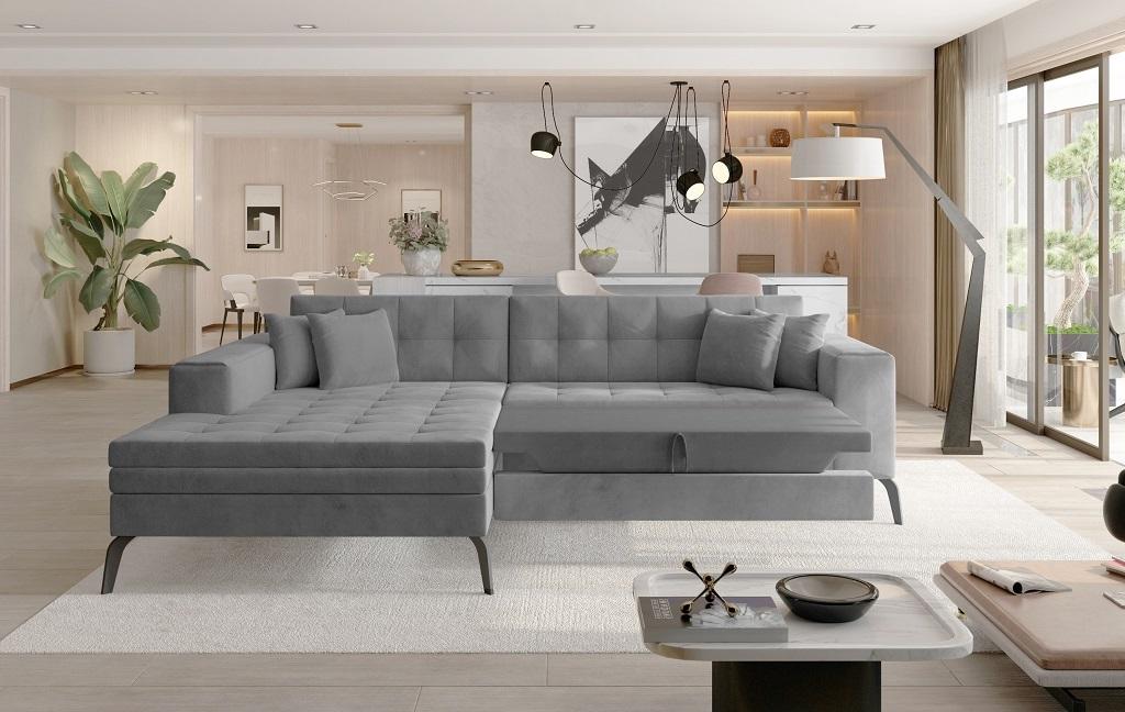 Dizaina dzīvojamās istabas L formas stūra dīvāns ar auduma polsterējumu, dīvāna stūris, jauns.