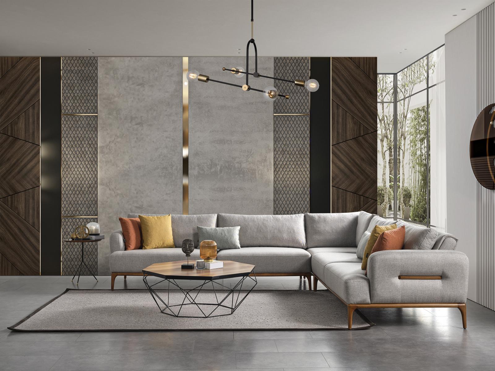 Stūra dīvāns, dzīvojamās istabas mēbeles, moderns stils