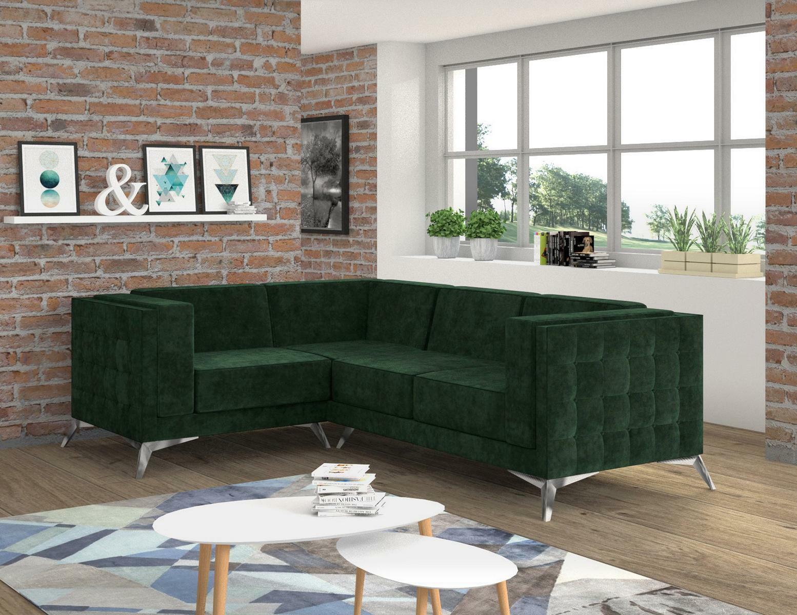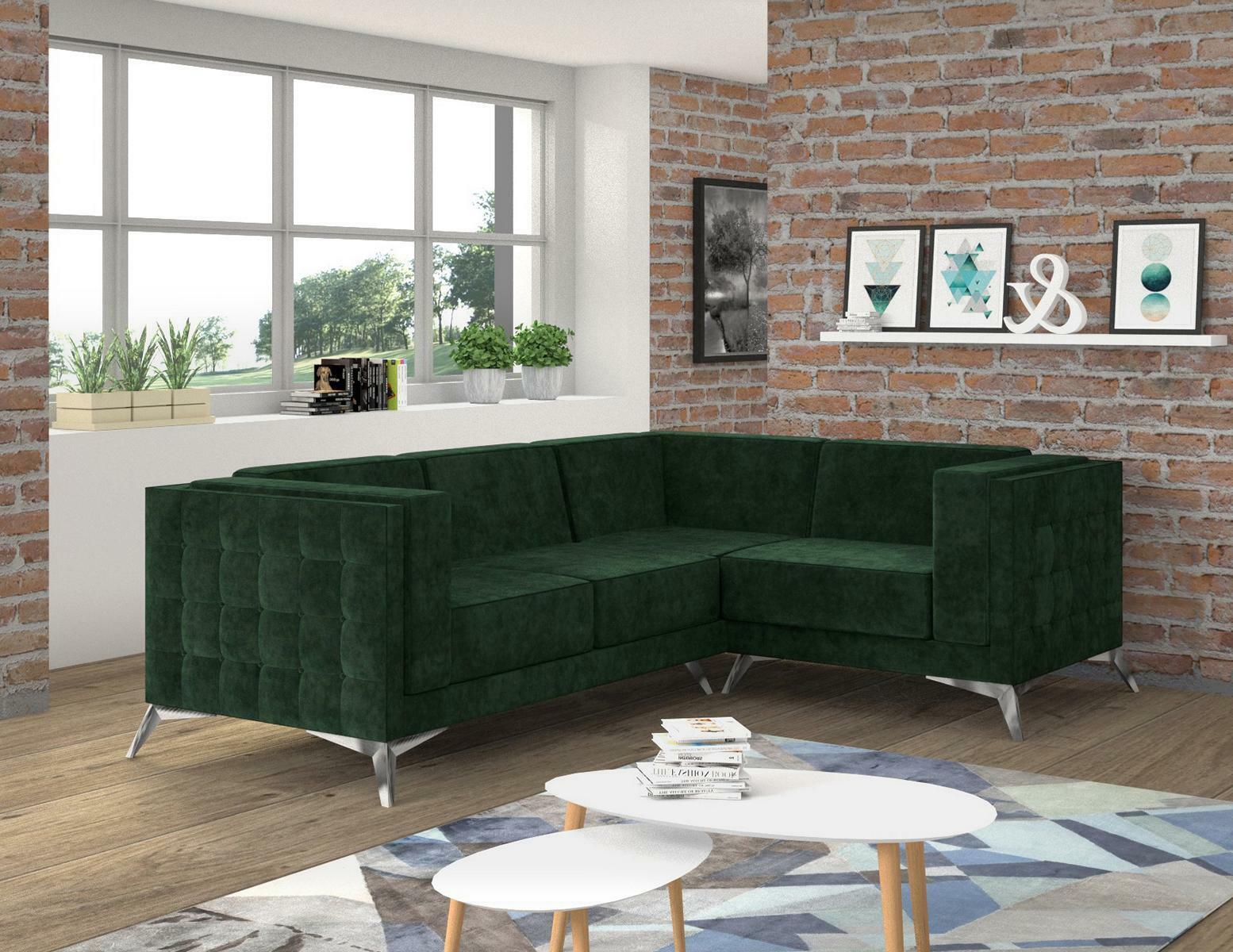 Stūra dīvāns L formas dizaina dīvāns ar auduma pārklājumu Moderns stūra komplekts zaļā krāsā