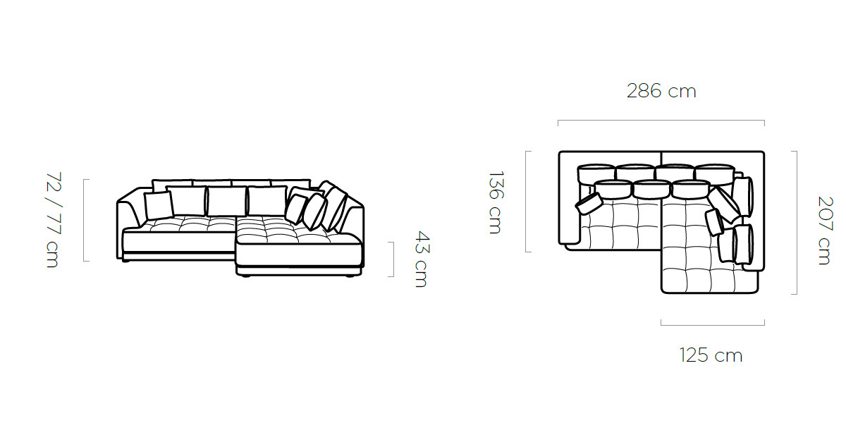Šis stūra dīvāns ir ideāls gan atpūtai, gan sociālajām sapulcēm, radot mājīgu un modernu atmosfēru. Iekšējā konstrukcija no īsta koka nodrošina ārzemju izturību un izturību ikdienas lietošanai. Ar sēdēšanas augstumu apm. 43 cm un sēdēšanas dziļumu apm. 60 cm šis dīvāns ir ērts gan sēdēšanai, gan guļamvietai. Izvēlieties savu materiālu un pielāgojiet šo eleganto dīvānu savām konkrētajām vajadzībām, radot savā mājā stilīgu un funkcionālu telpu.