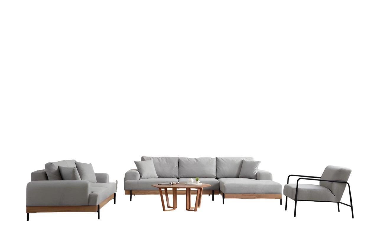 Gaiši pelēks dizaina stūra dīvāns 3 vietām 3 daļas | xlmebeles.lv