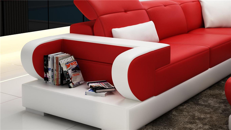 Stūra dīvāns, dīvānkomplekts, ādas dīvāns, stūra polster, pufa komplekts, sarkans dizainera dīvāns, jaunu