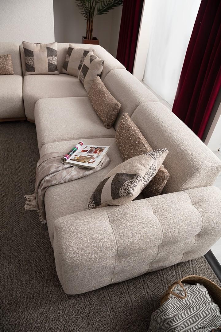 L formas dīvāns ir izsmalcināta dizaina paraugs, kas apvieno eleganci un funkcionālumu. Ar izmēriem 410 x 310 x 80 cm, tas kļūs par centrālo elementu jūsu dzīvojamā telpā. Bežs poliesters piešķir tam mūsdienīgu izskatu, kas viegli iekļaujas dažādos interjera stilos, vienlaikus nodrošinot izcilu komfortu. Šis dīvāns ir radīts, lai izceltu jūsu mājas greznību un veidotu ekskluzīvu atmosfēru. Ar 20 gadu pieredzi luksusa mēbeļu jomā, mūsu zīmols piedāvā plašu augstas kvalitātes dizainu izvēli, kas atbilst visaugstākajām prasībām. L formas dīvāns ir ideāls risinājums tiem, kuri vēlas izcelt savu unikālo stilu un dzīvesveidu.