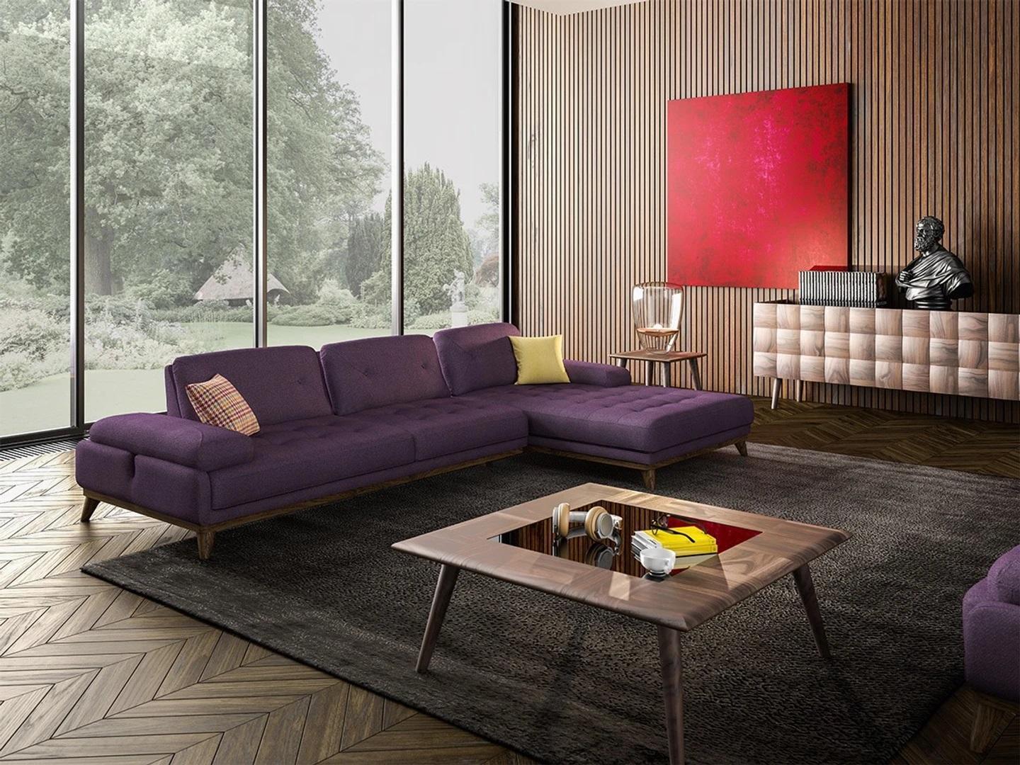 Lila stūra dīvāns L-formā dzīvojamajā istabā luksusa galdiņš Noslēgumu jauns komplekts Mēbeles