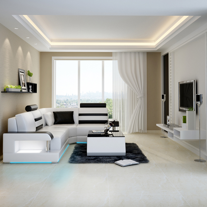 Ādas dīvāns ar USB, dzīvojamās istabas stūra dīvāns ar dekoru, moderns dizains, dīvāns L6016D