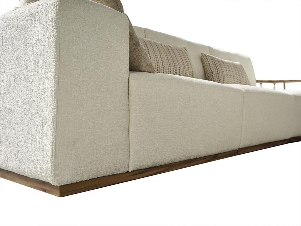 Stūra mīkstais dīvāns L-formas dzīvojamajā stilā Moderns, ar polsterējumu no koka un tekstila, stūrīgs galds.