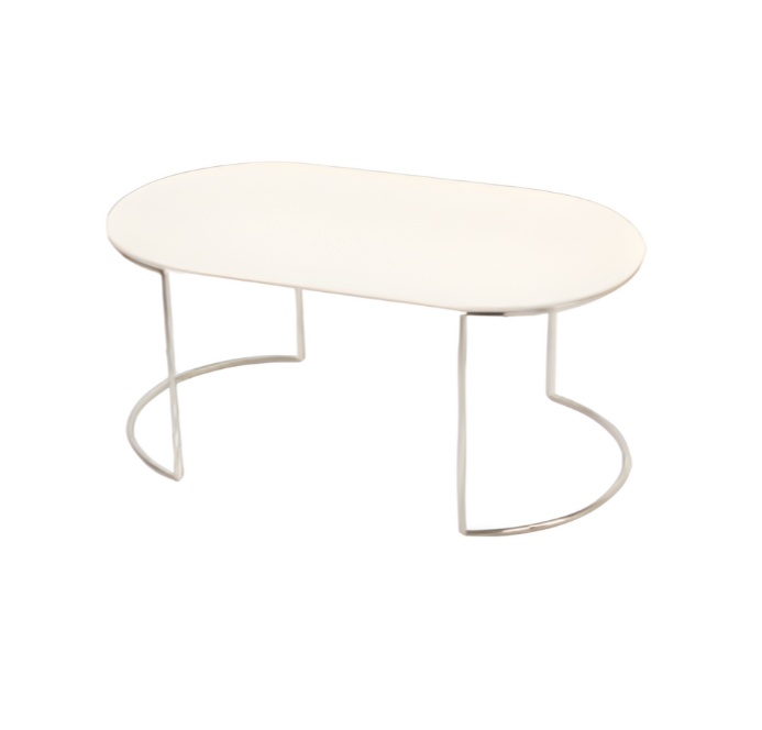 Luksusa ovāla balta kafijas galdiņš ar koka virsmu un nerūsējošā tērauda kājām | xlmebeles.lv