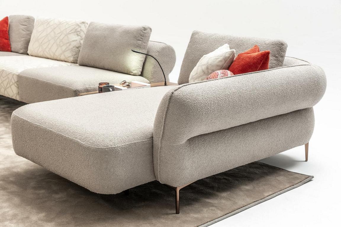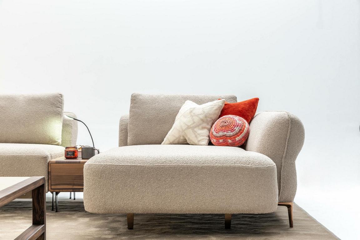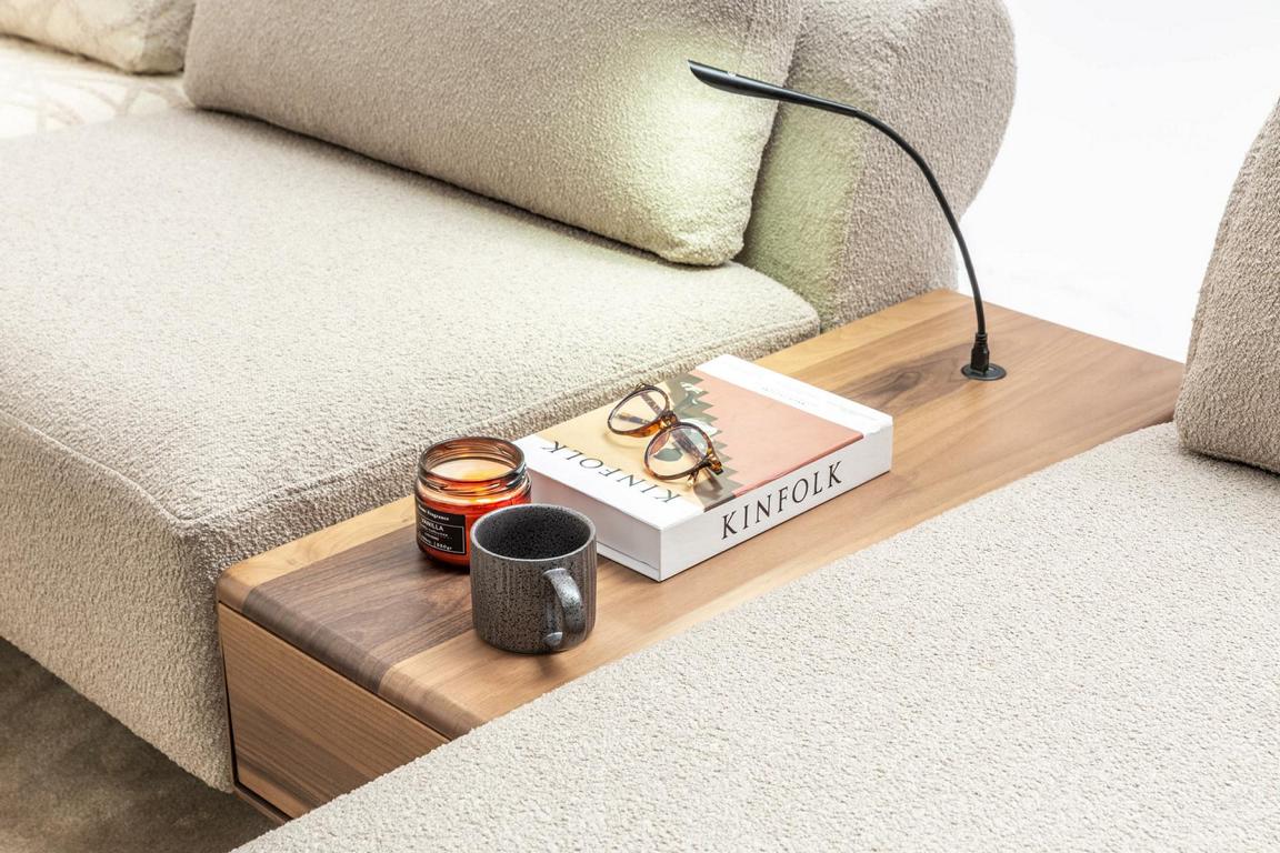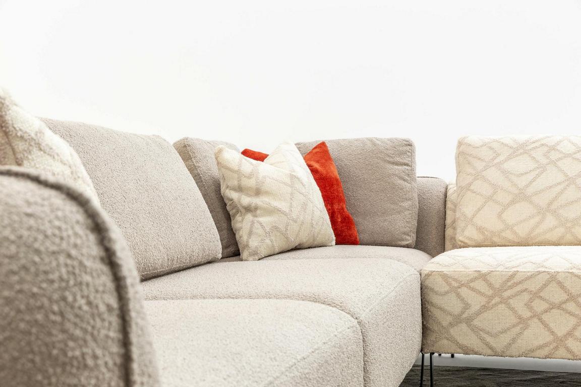 Stūra dīvāns U formā Bēšā krāsā Luksus mūsdienīgā viesistaba Moderns mēbelēts dīvāns Jauns