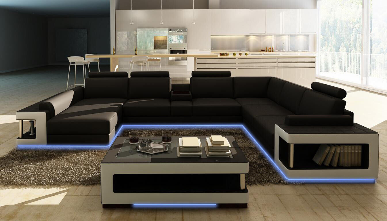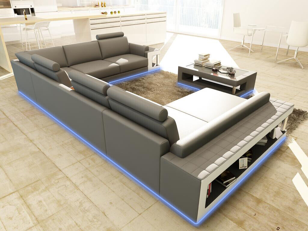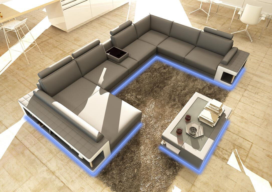 Ādas dīvāns XXL stūra dizains Lielais dīvāns galds Polster Eck Sitz Garnitur