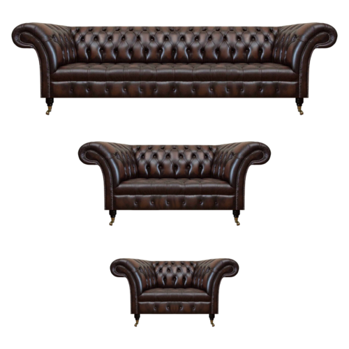 Chesterfield Ādas Brūna Dzīvojamā Istaba Mēbeles - Dīvāni Sērijas Luksusa Iekārtojums ir augstas kvalitātes dzīvojamā istabas mēbeļu komplekts, kas iederēsies stilīgā un eleganta dizaina interjerā. Šis komplekts ietver 4-vietīgu dīvānu, 2-vietīgu dīvānu un krēslu, kas izgatavoti no koka ar mākslīgo ādu. Dīvāni un krēsls ir ērti un izturīgi, nodrošinot ilgstošu komfortu un funkcionalitāti. Dīvānu sēdekļa augstums un dziļums, kā arī krēsla ergonomika ir pielāgota komfortablai sēdēšanai un atpūtai.