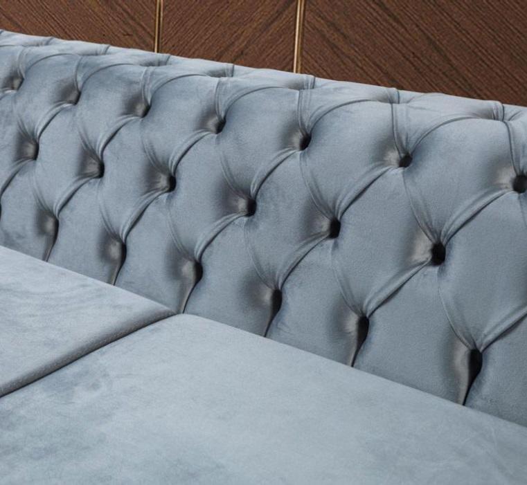 Šis Chesterfield dīvāngarnitūras komplekts piedāvā augstas kvalitātes un izsmalcinātu dizainu, piedāvājot jums pilnvērtīgu komfortu un eleganci jūsu mājas interjerā. Šis trīsvietīgais krēsls un dīvāns tiek komplektēti arī ar atbilstošiem 3+3+1 sēdvietām, nodrošinot papildu izmantošanas iespējas. Augstas kvalitātes audums ne tikai dod mīkstumu un komfortu, bet arī garantē ilgmūžību un izturību ikdienas lietošanā. Darināti precīziem izmēriem, šie mēbeļu komplekti ar saviem zilajiem toņiem iederēsies gan klasiskās, gan mūsdienīgās mājas interjerā.