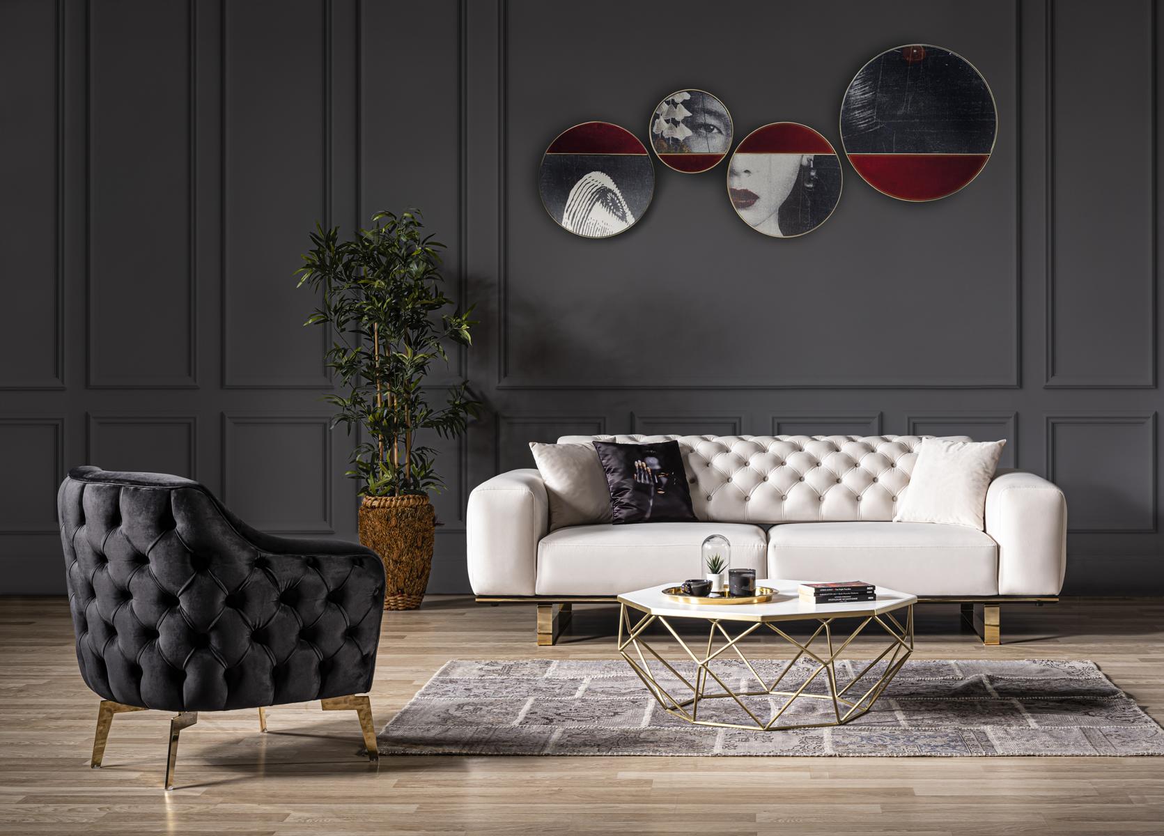 Šis sofa komplekts ir ne tikai vizuāli pievilcīgs, bet arī ērti un izturīgi. Lieliski piemērots gan atpūtai pēc garas dienas, gan viesu uzņemšanai. Tā augstā kvalitāte un luksusa dizains padarīs jūsu telpu eleganta un mājīga atmosfēra. Izmēri un ergonomisks dizains nodrošinās optimālu sēdēšanas komfortu, savukārt baltā krāsa radīs sajūtu no tīrības un gaismu. Šis sofa komplekts būs gan praktisks, gan dekoratīvs elements jūsu mājās.