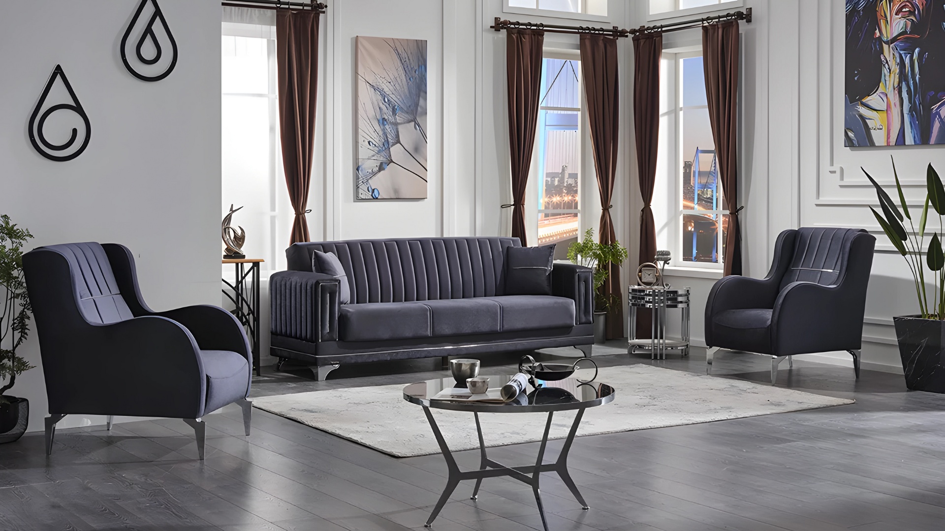 Izsmalcināts 3 daļu auduma dīvānu komplekts ar mīksto dīvānu 3+1+1 ir ideāls risinājums, lai radītu elegantu un modernu atmosfēru jūsu mājās. Šis dīvānu komplekts, izgatavots no augstākās kvalitātes pelēkā poliestera, apvieno stilu un komfortu, nodrošinot ne tikai estētisku baudījumu, bet arī ilgmūžību. Tā mūsdienīgais dizains un izsmalcinātās līnijas piešķir jūsu telpai greznu raksturu, kas atspoguļo ekskluzīvu dzīvesveidu. Ar 20 gadu pieredzi luksusa mēbeļu jomā, mēs nodrošinām, ka katrs elements ir rūpīgi izstrādāts, lai atbilstu prasīgākajām gaumēm. Šis dīvānu komplekts ir ne vien mēbele, bet arī mākslas darbs, kas ienesīs jūsu dzīvē elegance un komfortu.