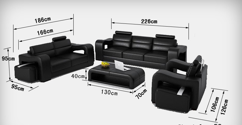 Garnitūra ādas dīvāns ar USB polsterējums dīvāni luksus jauna dzīvojamā ainava 3+2+1 ir ideāla izvēle ikvienam, kas vēlas apvienot eleganci ar praktiskumu savā dzīvojamajā telpā. Šis komplekts ietver trīs dažādu izmēru dīvānus - viena sēdvieta 126 x 95 x 95 cm, divu sēdvietu dīvāns 186 x 95 x 95 cm un trīs sēdvietu dīvāns 226 x 95 x 95 cm, kā arī atbilstošu galdiņu 130 x 70 x 40 cm, nodrošinot, ka jūsu viesistaba būs pilnībā komplektēta. Izgatavoti no premium ādas šķiedru materiāla (70% āda / 30% poliesters), šie dīvāni pieejami dažādās krāsās, lai pilnībā atbilstu jūsu stilam, un piedāvā iespēju izvēlēties īstas ādas vai pilnas ādas pārvalkus par papildu samaksu. USB klikšķu automātika ar trim slotiem nodrošina ērtu viedierīču uzlādi, lai neaizmirstamu komfortu jūsu mājās.